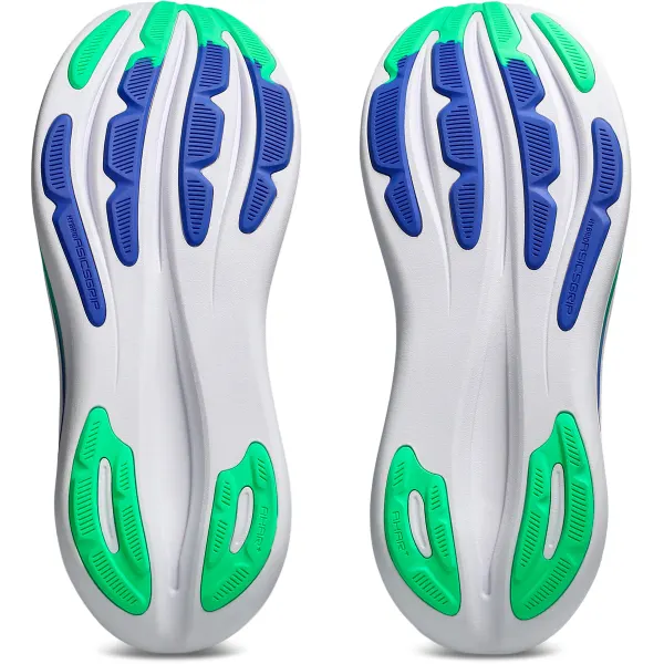 The midsole features a combination of FF BLAST PLUS cushioning and Pure GEL technology. These components help create a lightweight and soft cushioning experience that feels like you’re landing on clouds.